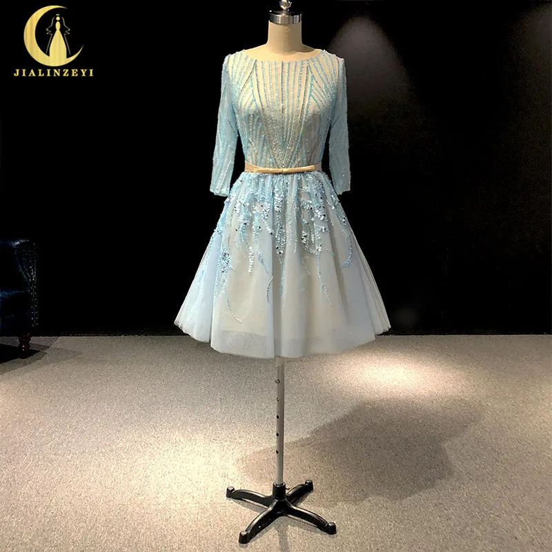 Special Price for Rhine real Pictures Elie saab Sky Blue Beads Knee Length Prom dresses arabic evening dresses long