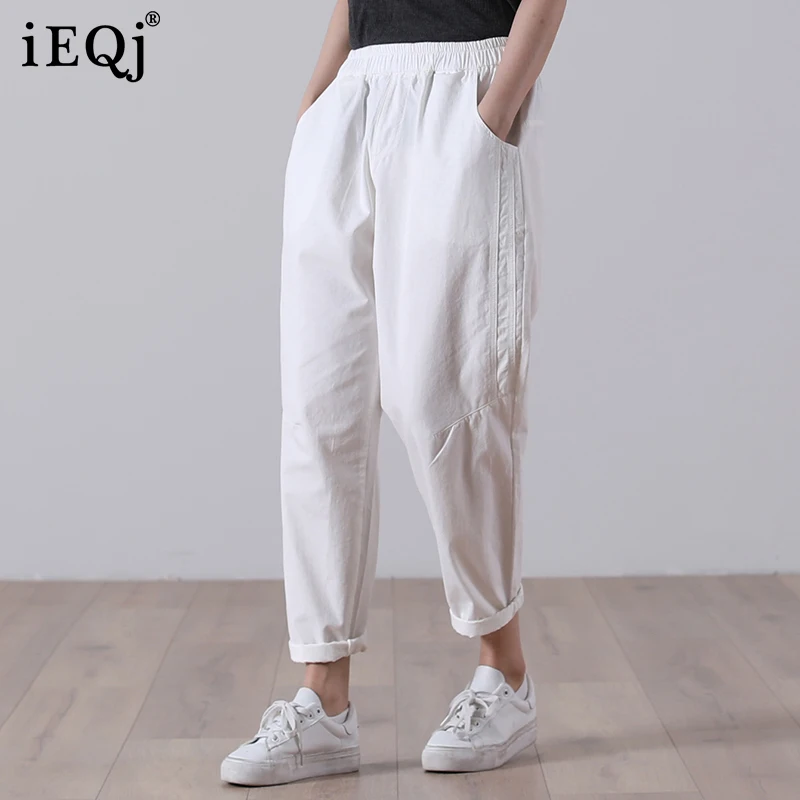 IEQJ High Waist solid color casual Trousers New Loose Pockets Harem Pants Women Fashion Tide summer 2021 3F0048