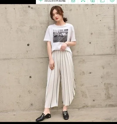 Addition Information of HOT SELLINGfashion fold striped mid waist straight wide leg pants female Harem pants IN STOCK